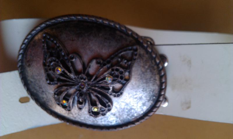 Качественный ремень Испания пряжка бабочка цвет молочный качественный плотный кожзаменитель не лущится (не отличить от кожи)в хорошем состоянии