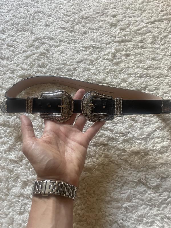 Пояс Н&М, кожзам, двойная пряжка, которая позволяет регулировать ширину в талии. Размер С. Подойдет тем, кто носит С и ХС (очень аккуратно сделаны дополнительные отверстия). На талию 63 - 78 см. Длина пояса от пряжки до пряжки 58 см + дополнительная вставка, которая регулирует ширину по талии. В отличном состоянии, совсем немножко затертые кожаные элементы