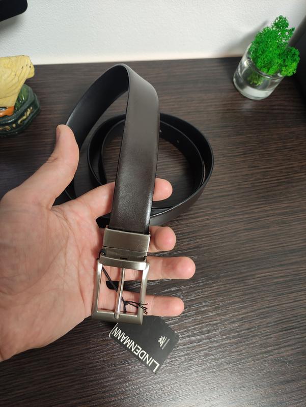 Lindenmann классический мужской двухсторонний ремень кожаный натуральный черный / коричнев...