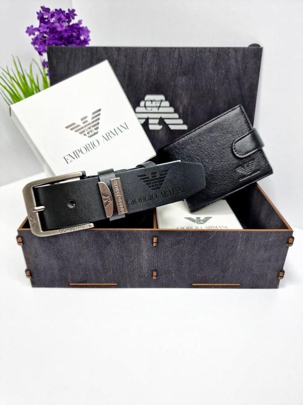 Набор подарочный: ремень мужской кожаный + кошелек мужской кожаный в стиле armani