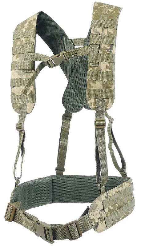 Ременно-плечевая система (РПС) Kiborg R-2 - удобный и практичный элемент военной экипировки, предназначенный для рационального размещения снаряжения. Важную роль в успехе боевых и тактических операций играет наличие под рукой всего, что может потребоваться для оперативного выполнения задач в экстремальных условиях. РПС Kiborg R-2 удобен и надежен в использовании, регулируется по обхвату и высоте с помощью устроенных на стропах двухщелевок. Дополняется при необходимости разными подсумками. В пошиве используется: - ¦специальная ткань Cordura 500D с IRR покрытием, которая не светится в приборах ночного видения, Супер крепка на разрыв, не горит, водонепроницаема, устойчива к любым механическим воздействиям. - фурнитура 100% полиамид, отвечающая техническим требованиям Министерства обороны Украины. - стропа премиум класса - Турция. - подкладка из 3D сетки. По всей длине пояса прошит 2 полосы системы Molly. На лямках дополнительно имеется система молли для возможности крепления разных итогов, например под рацию или турникет. На спине есть эвакуационная ручка. Также дополнительно имеется фиксация плечевой части на груди с помощью фастекса 25мм.