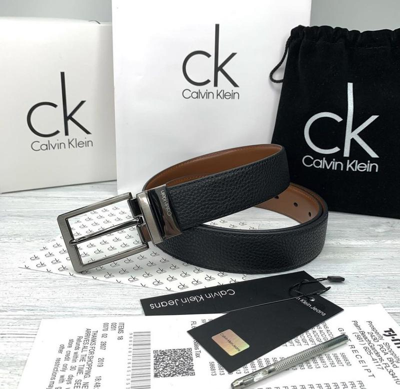 Чоловічий ремінь calvin klein чорний / коричневий на подарунок