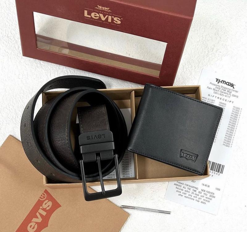Мужской ремень и кошелек levis / подарочный набор / черное портмоне + поясная подарок