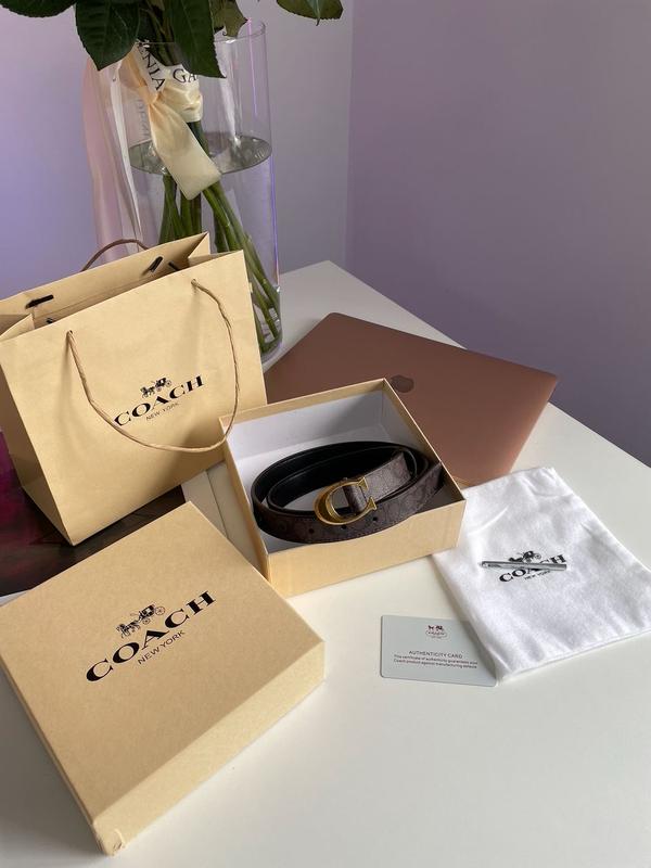 👜 Coach Sculpted C Buckle Belt Brown (Арт: 66132) 💵 : 1690 грн 📐 Размер: 100 х 2.5 см 🧵 Материал: Кожа 🔎 Описание: Ремешок выполнен из гладкой кожи с фирменной канвой. Металлическая бля под золото. Есть возможность сделать дополнительные отверстия под необходимый размер. Комплектуется в брендовой коробке и пыльнике, есть пакетик и карточка.