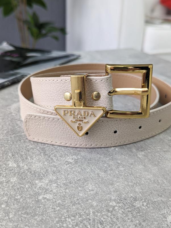 Ремень женский Ремень Prada украшен фирменным логотипом, не снимается. Материал: эко-кожа высшего сорта Ширина: 3см Длина: 100-106 см код черный+золото P-10010 черный+серебро P-10011 молочный P-10012