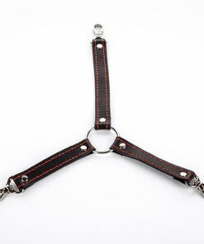 Соединитель прошитый красной нитью. Соединитель для наручников. Материал кожа и никелированный метал. Дополнительные характеристики: Материал : Натуральная кожа Тип: Ремень
