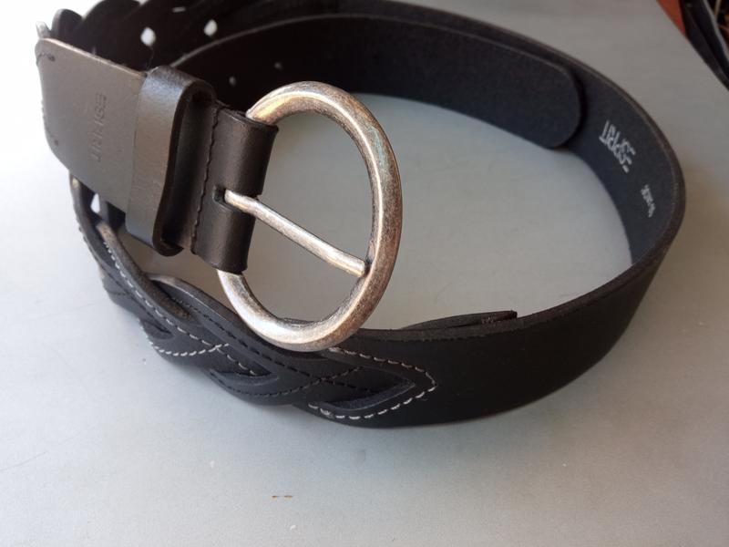 кожа, длина ремня без пряжки до первого отверстия 86 см, до последнего отверстия 96 см, ширина 4 см.