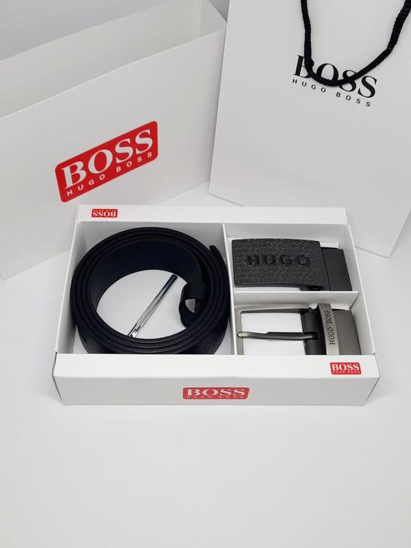 Мужской набор ремень две пряжки из натуральной кожи. черный мужской ремень хьюго босс. hug...