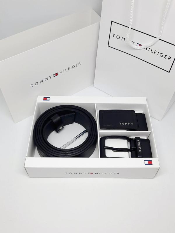 Мужской набор из натуральной кожи. черный кожаный ремень хилфиджер. tommy hilfiger. подаро...