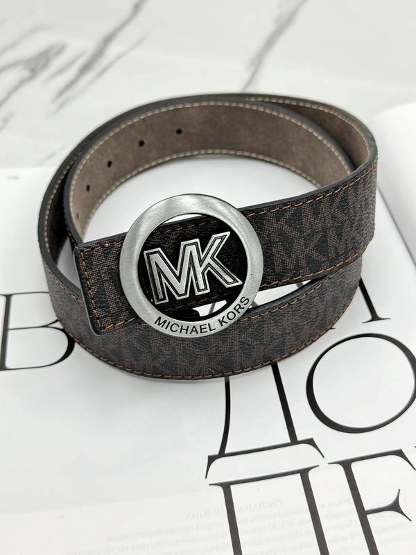 Ремень унисекс ⚪️ Ремень украшен фирменным логотипом. Материал: кожа Ширина: 3,5см Длина: 105 - 130 см код черное серебро MK-10020 коричневое серебро-мат MK-10021