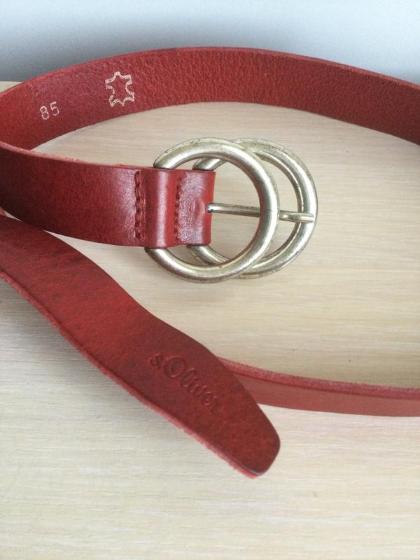Очень качественная эластичная натуральная кожа. Длина без пряжки 101см, ширина 2,2см, застежки на отрезке 73-89см. Цвет бордово красный. Стан как новый.
