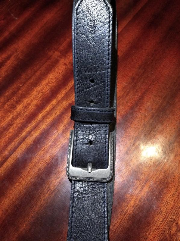Ремень D.C.K. из натуральной кожи черного цвета. Довжина полотна ремня 105см., ширина 4,5см., отвори 87/97см. Стан нового.