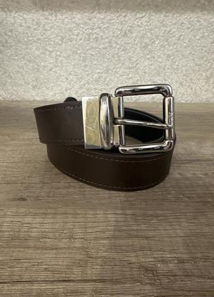 Ремень с натуральной кожи Двухсторонний,с помощью пряжки имеет два цвета кожи-черный и коричневый Длина без пряжки 101,ширина 3,5