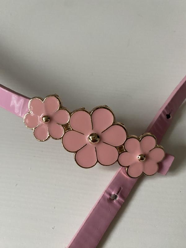 Тоненький ремінь з красивою пряжкою у вигляді квіточок, яка фіксується в спеціально прорізані отвори. Довжина 125 см.
