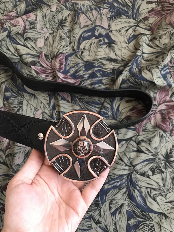 Ремінь з пряжкою сюрікеном Grand Way,довжина 103 см, ширина 4 см, пряжка 8*8 см, стан хороший ,сам пояс має нюанси