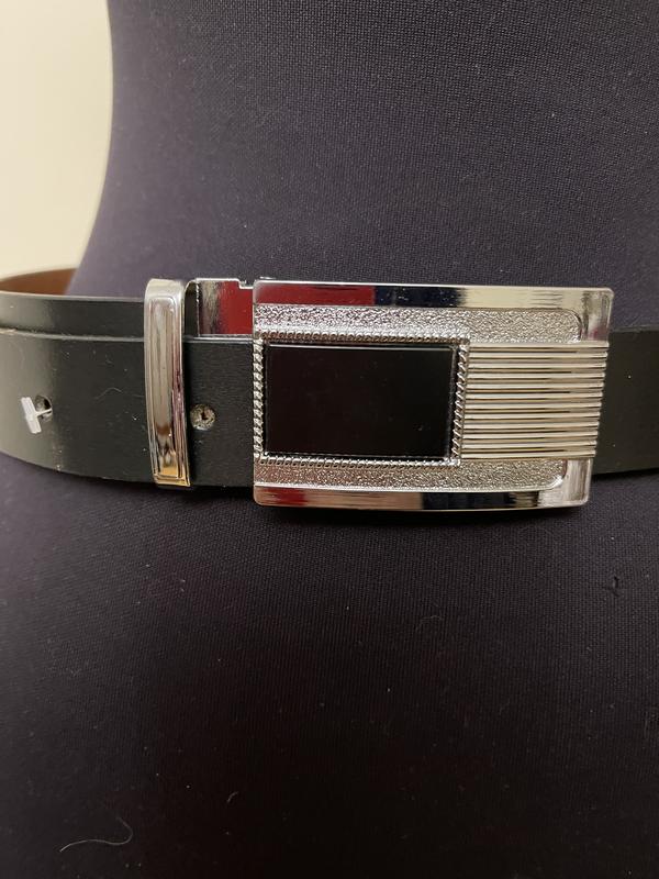 Ремень черного цвета, ширина 2,8 см, длина 92 см, дырочки от 68 до 85 см. Рисунок отсутствует, глазок, экокожа.