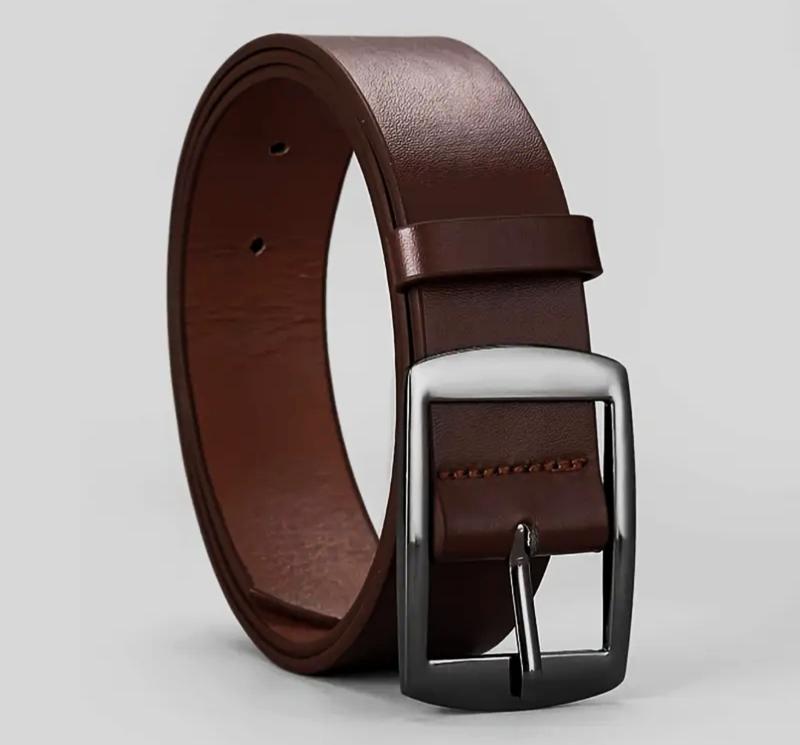 Мужской стильный искусственный кожаный ремень - Регулируемый, удобный с гладкой пряжкой из сплава для повседневной и деловой одежды