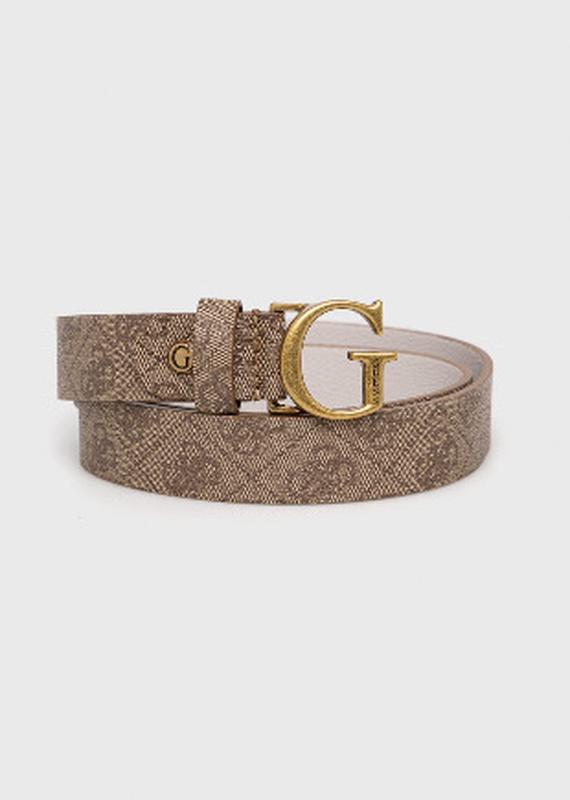 Ремінь із колекції Guess. Модель виготовлена з поєднання натуральної та екологічної шкіри. - Довжина ременя від початку пряжки до останнього отвору: 90 cm. - Довжина ременя від шпильки до першого отвору: 80 cm. - Кількість отворів: 5. - Ширина ременя: 2,5 cm.