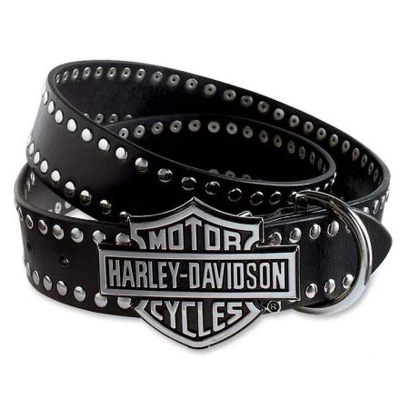 РЕМЕНЬ КОЖАННЫЙ HARLEY DAVIDSON BAR & SHIELD LOGO PLAQUE WITH STUDS BLACK Ремень сшит из водостойкой кожи шириной 4см. Украшен металлическими деталями по всей длине. Пряжка сделана ввиде символики Harley-Davidson. 102 см довжина