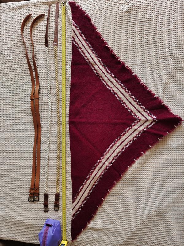 1 пояс натуральная кожа. двойной, еще 2 с кожаными вставками. один новый.второй- в подарок (не стира), платья из шерсти, замеры на фото