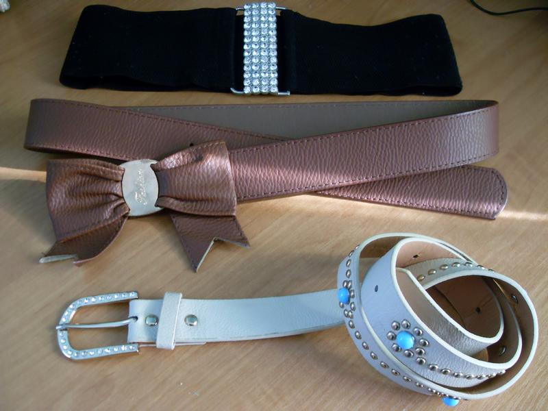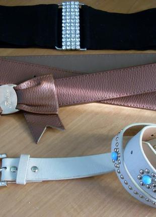 Чорный ремень на ризинке.Коричневый на гачке новый. Кремовый с круглыми шыпами ы камушками.