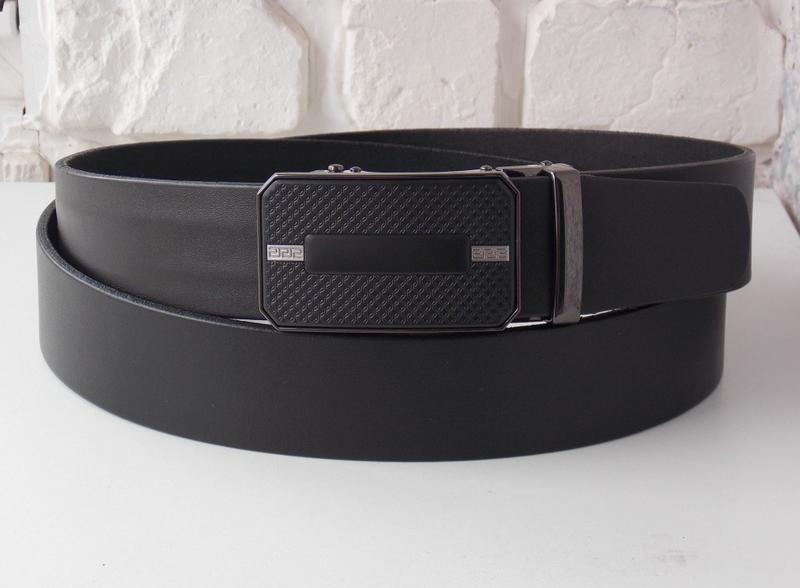 Мужской кожаный ремень с пряжкой автомат от украинского производителя. Подходит, как под джинсы так и под брюки. Классический дизайн, отличное качество, подарочная коробка. МАТЕРИАЛ: Натуральная кожа. ПРЯЖКА: Автомат, металлическая. ДЛЖИНА РЕМНИЦА: 115 см (без учета пряжки, размер уменьшается с помощью зажима на пряжке). ШИРИНА РЕМЕНЯ: 3,8 см ТОВАРА КОЛИР: Черный. РАЗНОВИД РЕМНИЦА: Для брюк и джинсов. ВИРОБНИЦТВО: Україна.