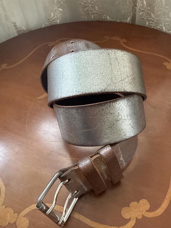 Країна походження-Італія. Загальна довжина-100 см. Довжина від пряжки до першої пари дирочок-75 см, до найдальшої пари-90 см. Внутрішня сторона-коричневий колір, зовнішня-з ефектом потертостей. Стан ідеальний.