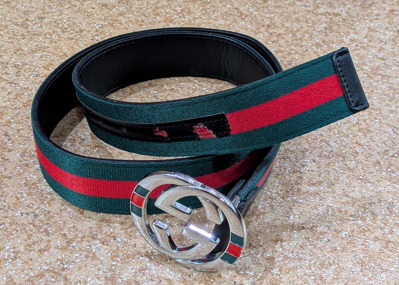 Ремень Gucci, незначительное б/у ( повреждения на накладке с отверстиями, см. фото), длина полотна 109.5 см . ширина 3.8 см. на пояс от 90 до 100 см. Верх текстиль, внутри кожзам.