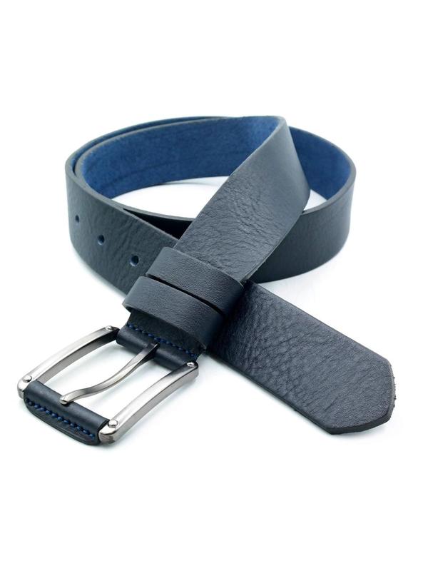 Шкіряний чоловічий ремінь weatro 3,8 х 105-125 см темно-синій 120