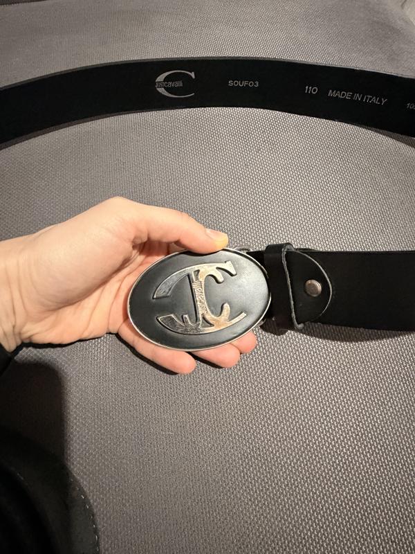 Оригінальний чоловічий ремінь Just Cavalli. Виробництво — Made in Italy. Матеріал — 100% шкіра, масивна металева пряжка з логотипом JC. На ремені є фірмова голограма, що підтверджує автентичність (див. фото). Стан: дуже хороший, шкіра міцна, без пошкоджень, пряжка важка якісна. Розмір: 110 см Ремінь виглядає дорого і підходить під джинси, штани, повсякденні та стильні образи.
