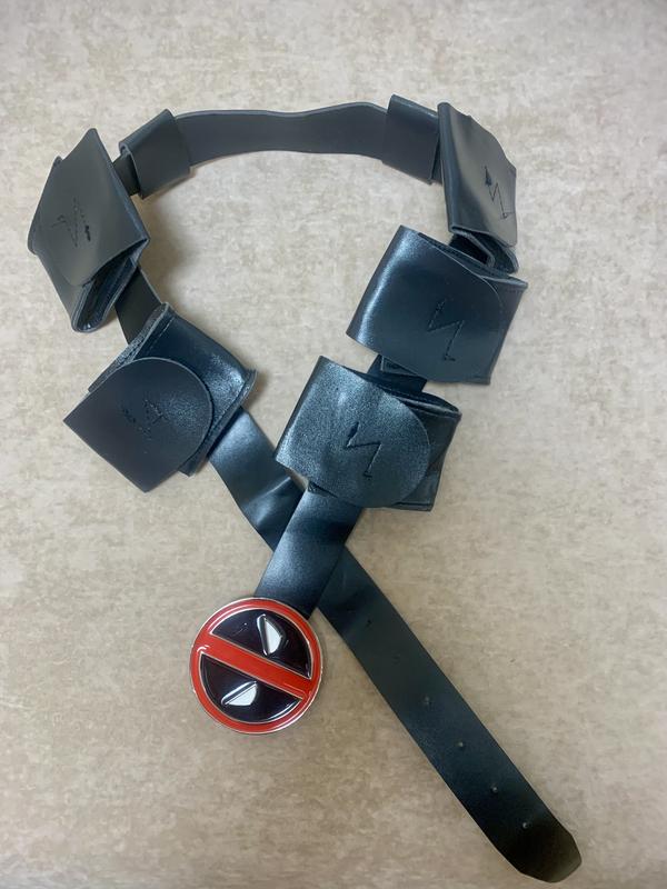 Ремінь пояс супер героя Марвел marvel чорного кольору з 5 кишенями Довжина з пряжкою 117см Ширина 3,5 см Пряжка 7,6см металева Б/у, ідеальний стан нової речі Склад еко шкіра