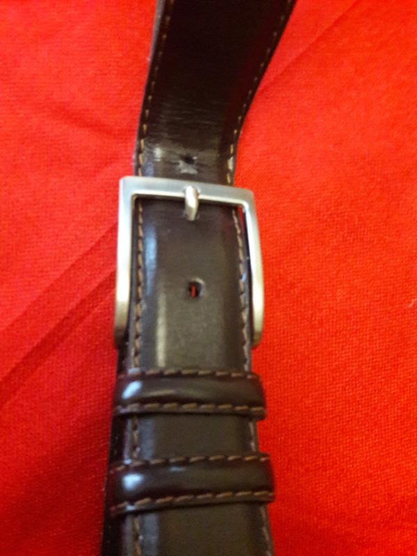 Кожаный ремень ( Италия). Длина 113 см, до 1 отверстия 90 см. Ширина 3,2 см. Цвет - темно - коричневый.