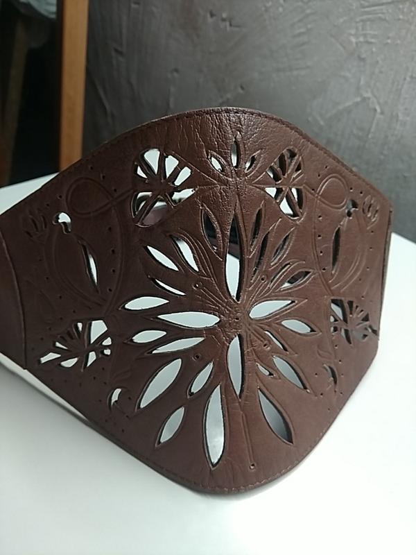 Шикарный пояс из натуральной кожи. Изнанка замша. Очень красивая перфорация с теснением Цвет как на фото. ширина 17 см длина до последней дырочки 68