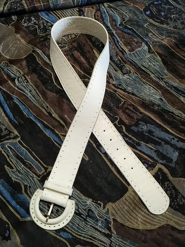 Хороший пояс . Длина до первой застёжки 76см., а до последней 85см. Есть дефект на изнаночной стороне. На фото видно.