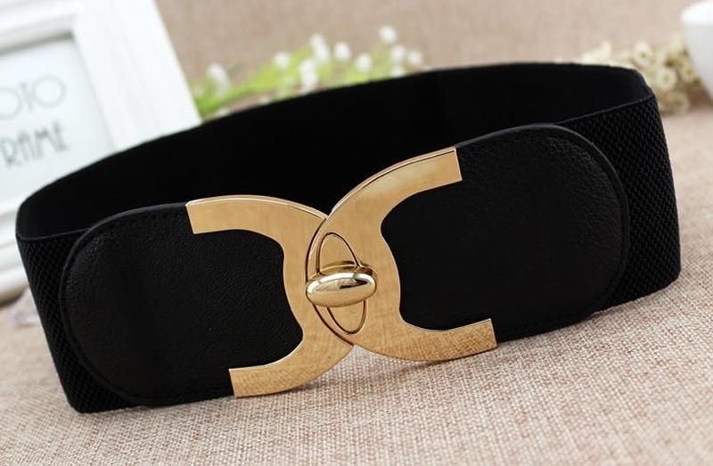 Эластичный широкий ремень {пояс} женский с золотистой пряжкой {6 см}