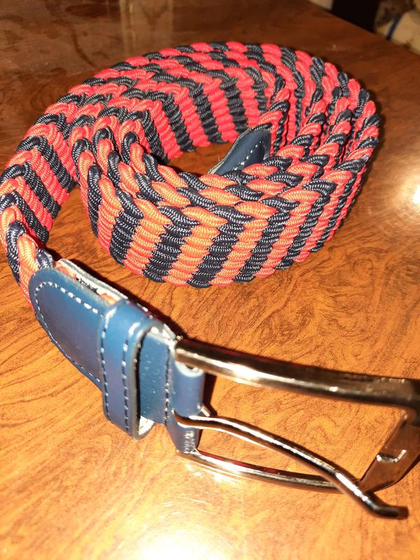 Ремень красный в синюю полоску, плотный, длинна 119