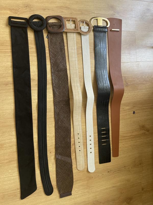 Продам ремни, в отличном состоянии Zara - 80 см ( карамельный ) Mango - 80 см ( лаковый под питона) Mango - размер s ( льняной с круглой пряжкой) Mango - размер s ( соломенный с квадратной пряжкой ) Mango - размер s ( коричневый с деревянной пряжкой) Mango - размер s ( Черный шелковый с круглой пряжкой ) Mango - размер s ( черный под замш ) Cos - размер one size ( белый в стиле Isabel marant ) MaxMara - размер s ( на талию , плетёный с шелковой нити, оригинал) За ценой , пишите в личные . Так на каждый ремень своя цена . Торг уместен.