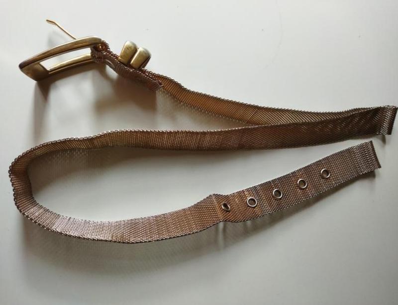 ремень винтажный Perry Ellys, металлический в стиле кольчуга, золотого цвета с патиной, очень эффектный и удобный, плетение видно на фото, тяжеленький, подходит к любимому наряду - джинсы, блуза с юбкой, кардиган, длина 100 с пряжкой.