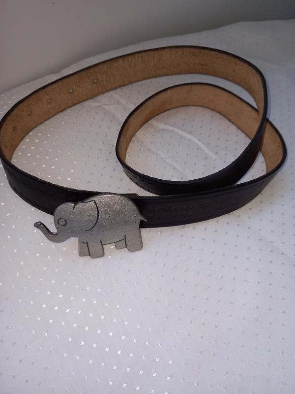 кожаный ремень с красивой пряжкой слоник с пряжкой 106 см без 98см ширина 3см цвет тёмно коричневый