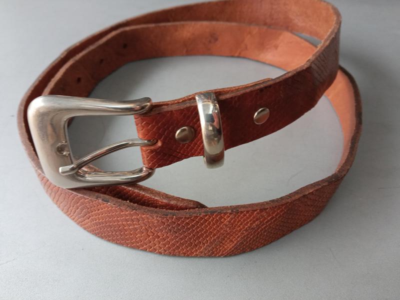 кожа, женский, до первого отверстия 89см, до последнего отверстия 99 см, ширина 2.5 см.