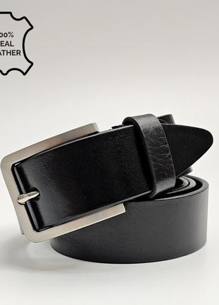 Черный кожаный универсальный ремень 4 см из итальянской кожи с серебристой пряжкой