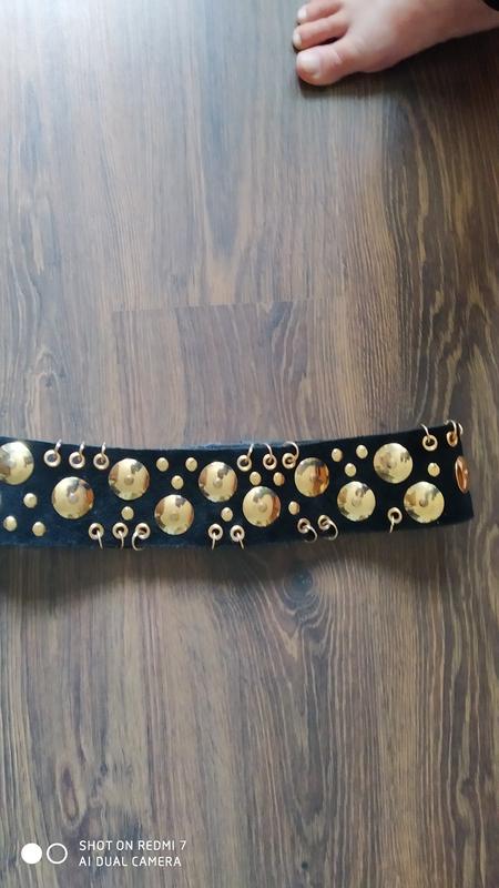 Ремінь брендовий з шкіри-замші, інкрустований "золотими" гудзиками. Довжина на талію 84 см.