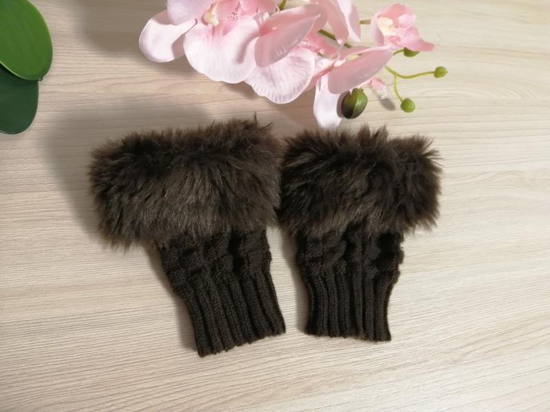 Жіночі коричневі в'язані з акрилу та оздоблені штучним хутром. Ярлики нажаль зрізані, в ідеальному стані, гарно тягнуться. Заміри на фото.
