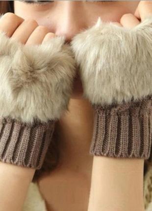 Рукавички без пальців зі штучним хутром