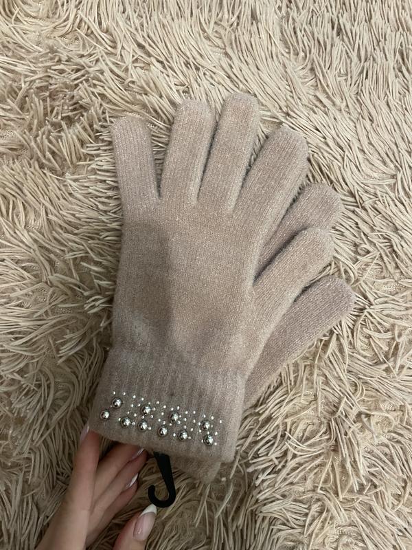 Рукавички жіночі (перчатки) Нові Колір: беж Склад: 35% бамбук, 40% wool, 25% spandex