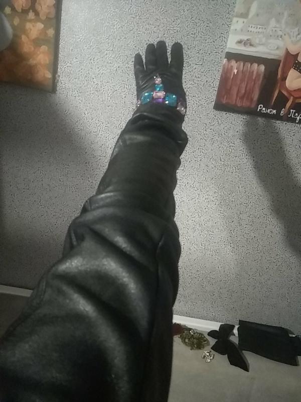 очень крутые перчатки,бу в хорошем состоянии,размер7,5.кожа стрейч.длина 84 см на высокую девушку.