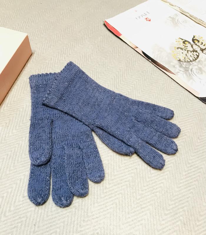 Перчатки вязаные голубого цвета с люрексовой нитью бренд george ❄️