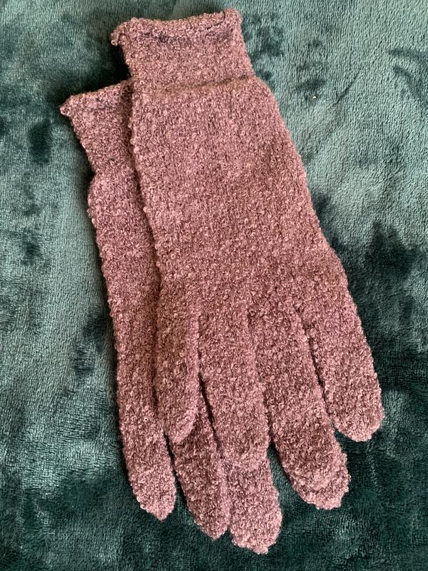 Ніжні бузкового кольору рукавички з пряжі «буклє‘