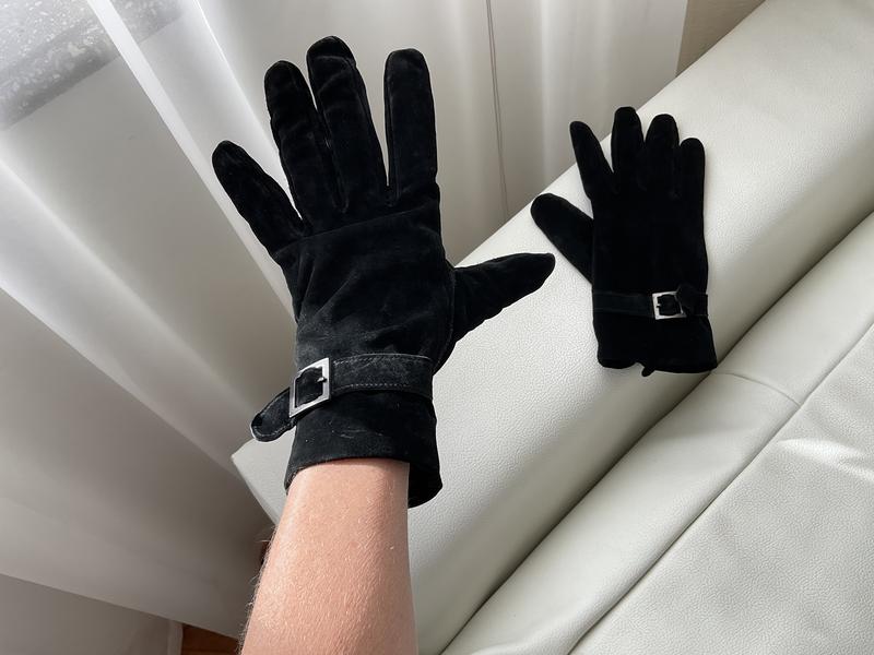Бархатная замша, утеплены флисом. Идеальное состояние, минимальные следы использования можно заметить, сильно присмотревшись, по пальцам на ладони. Нужно пройтись щеткой для замши или отпарить. Указан M размер. Длина-24.5см., Ширина-10см.
