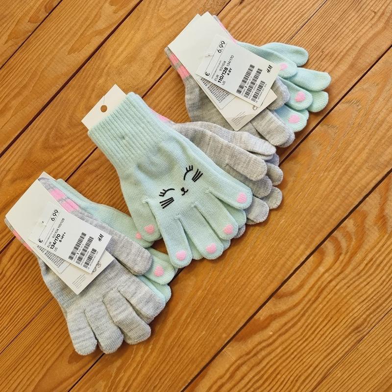 ### Симпатичные вязанные перчатки для девочки. Бренд H&M Цвет: Мятный / Серый. Состав: 88% акрил, 11% полиэстер, 1% эластан. Размер 110-128 (4-8 лет)